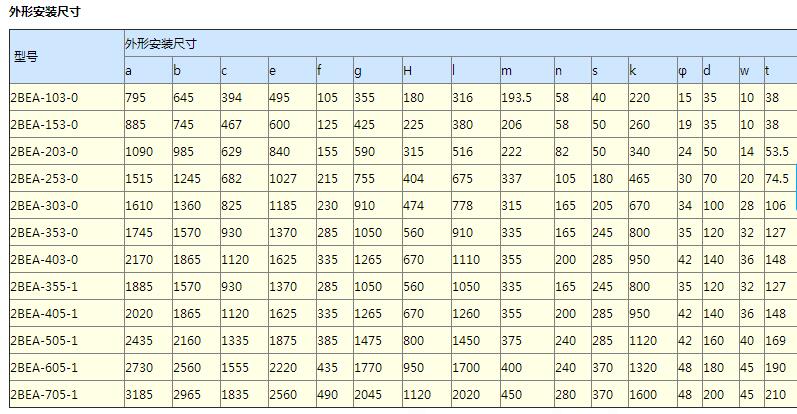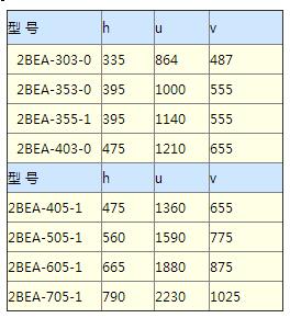注:以上所選電機功率可在大多工況下工作。如排氣口壓力較高(0.02~0.05MPa),則應相應加大電機功率;如2BE1真空泵正常工作時軸功率較小,也可選用接近軸功率的電機功率,如此更為節能。